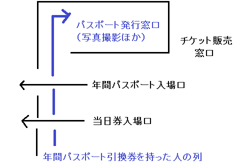 年間パスポートは2回行けば元が取れる料金なので、何回か行けそうな人はパスポートにしてしまった方がお得です。ただし写真入りなので、家族や友人などの他の人は使えません。